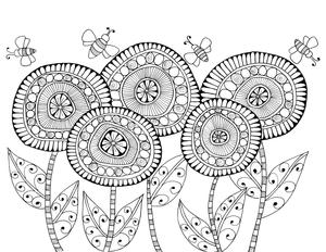 Bees And Flowers Coloring Page Favecrafts Com
