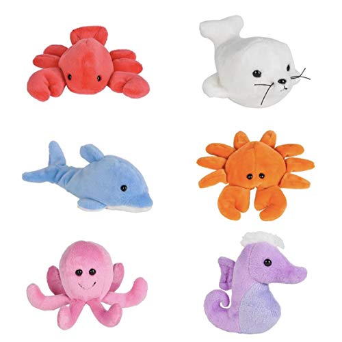Adventure Planet Six 6 Sea Life Mini 5 Plush Animals Blue Dolphin Lobster Crab Octopus Seahorse Seal Party Fav