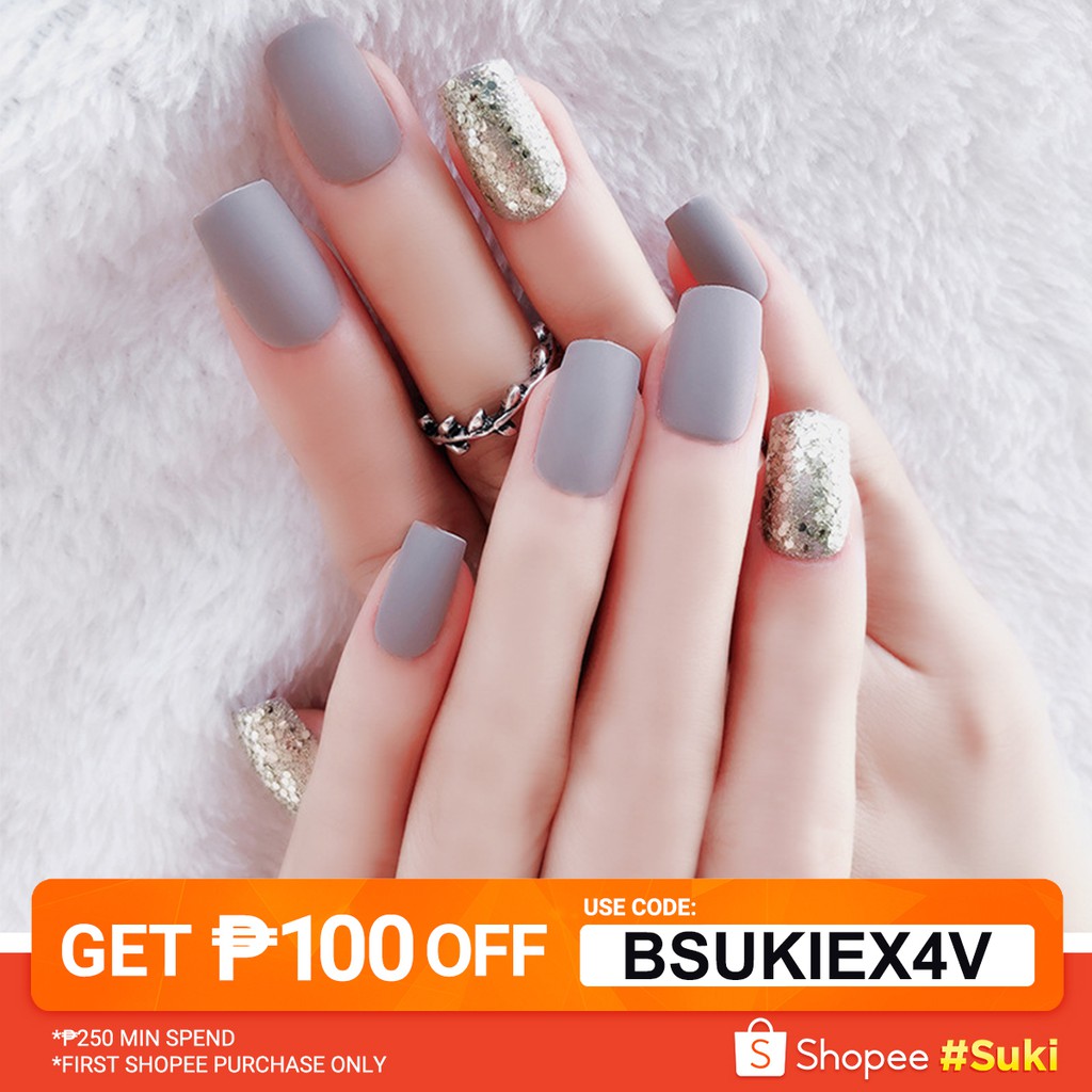Square Glitter Short Mix Nail Brown Pink Silver Powder Mixed Color Fake Nail Uv Gel Acrylic Charming Daily Wear Full Cover Nails False Nails Aliexpress